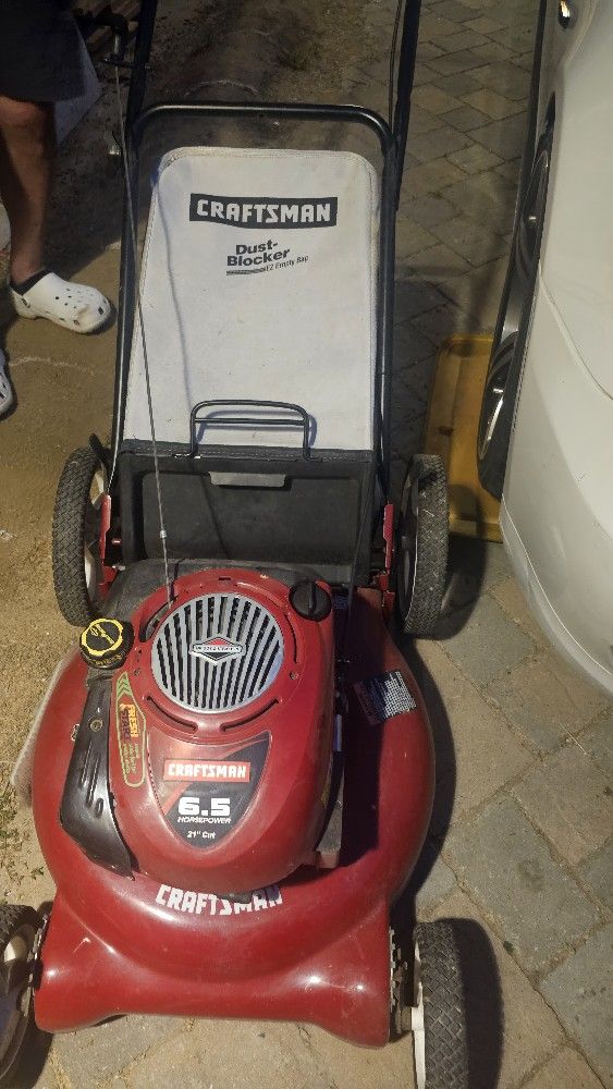 Craftsman 21-in Gas Push Lawn Mower with Briggs and Stratton Engine. Used, like-new condition. Missing one bolt on the end of the push handle but still functional. $300 cash only pls. Or best offer