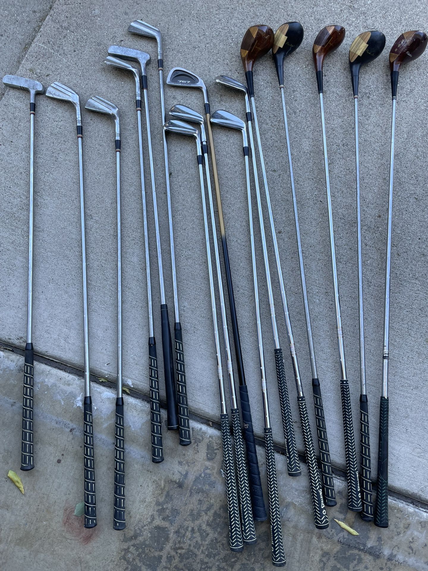 Variety of golf clubs -16 Sold as is Pro master Pin flite Lamkin Spalding