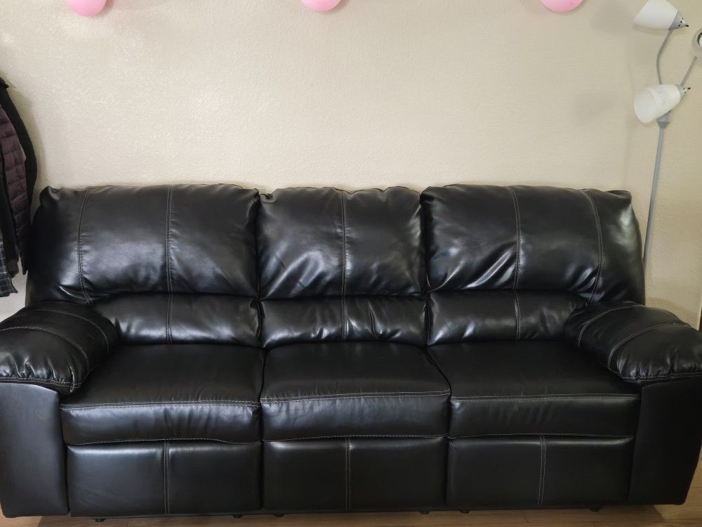 Leather Recliner Love Seat And 3 Seater Black