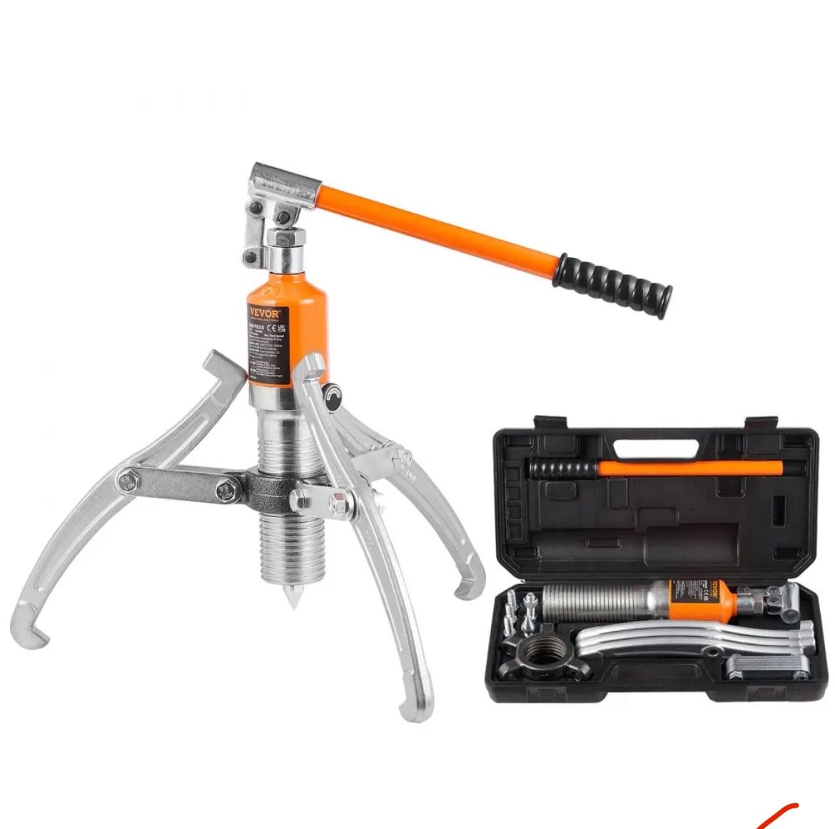 Brand new in box Pick up only Features & Details 15T Pulling Capacity: The 15T hydraulic gear puller ensures professional mechanical maintenance and disassembly work, with a maximum pulling size of 12"/ 304.8 mm. Ideal for various tasks such as machine maintenance, bearing, gear, pulley disassembly, railway/ship maintenance, and mining equipment maintenance. Leak-Proof Design: The integrated casting oil cylinder and oil cover effectively prevent cracking and oil leakage. The thickened pump body with clear threads on the surface provides high torque and a maximum stroke of 2.2 inches / 55 mm, allowing for closer to the target object, enabling a shorter stroke and more efficient pulling process. Horizontal and Vertical Operation: This gear puller allows horizontal and vertical pulling operations, making working on machine components facing different directions convenient. The included extended handle ensures more flexible and labor-saving operation. Flexible Jaw Conversion: Easily switch between a two-jaw or a three-jaw wheel puller as needed. Two jaws provide stronger pulling force and quick extraction of small bearings and gears. (For operational stability, install the two claws diagonally.) The three-claw gear puller forms a triangular structure, providing more uniform tension, and is ideal for firmly grasping heavy and large components during disassembly. Industrial-Grade Strength: The pump body is forged through high-temperature quenching, ensuring it remains sturdy even after long-term use, without deformation or bending. The finely processed jaws deliver stronger grip strength. The whole hydraulic pulley puller is crafted from industrial-grade steel with a high-quality rust and corrosion-resistant coating.