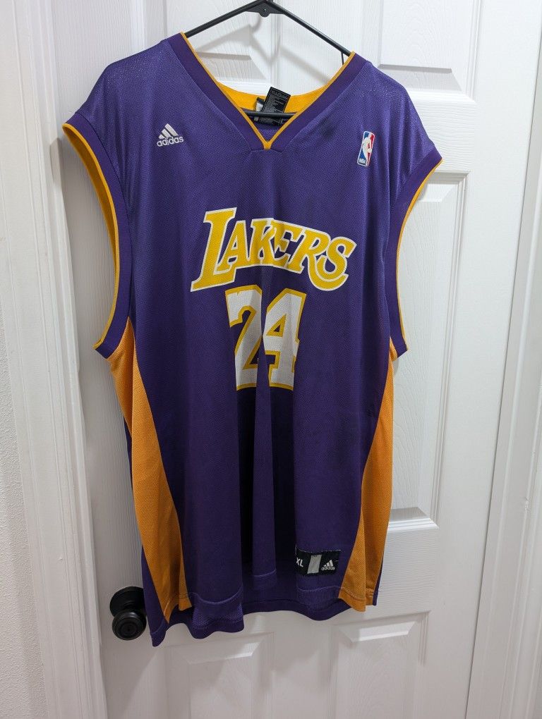 Adidas NBA Los Angeles Lakers Kobe Bryant #24 jersey in purple and gold.