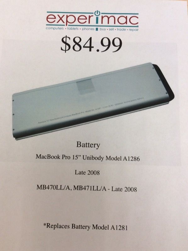 Model A1286, late 2008, new, with the purchase of the battery installation is free, 90 day warranty, our price not include tax breaks