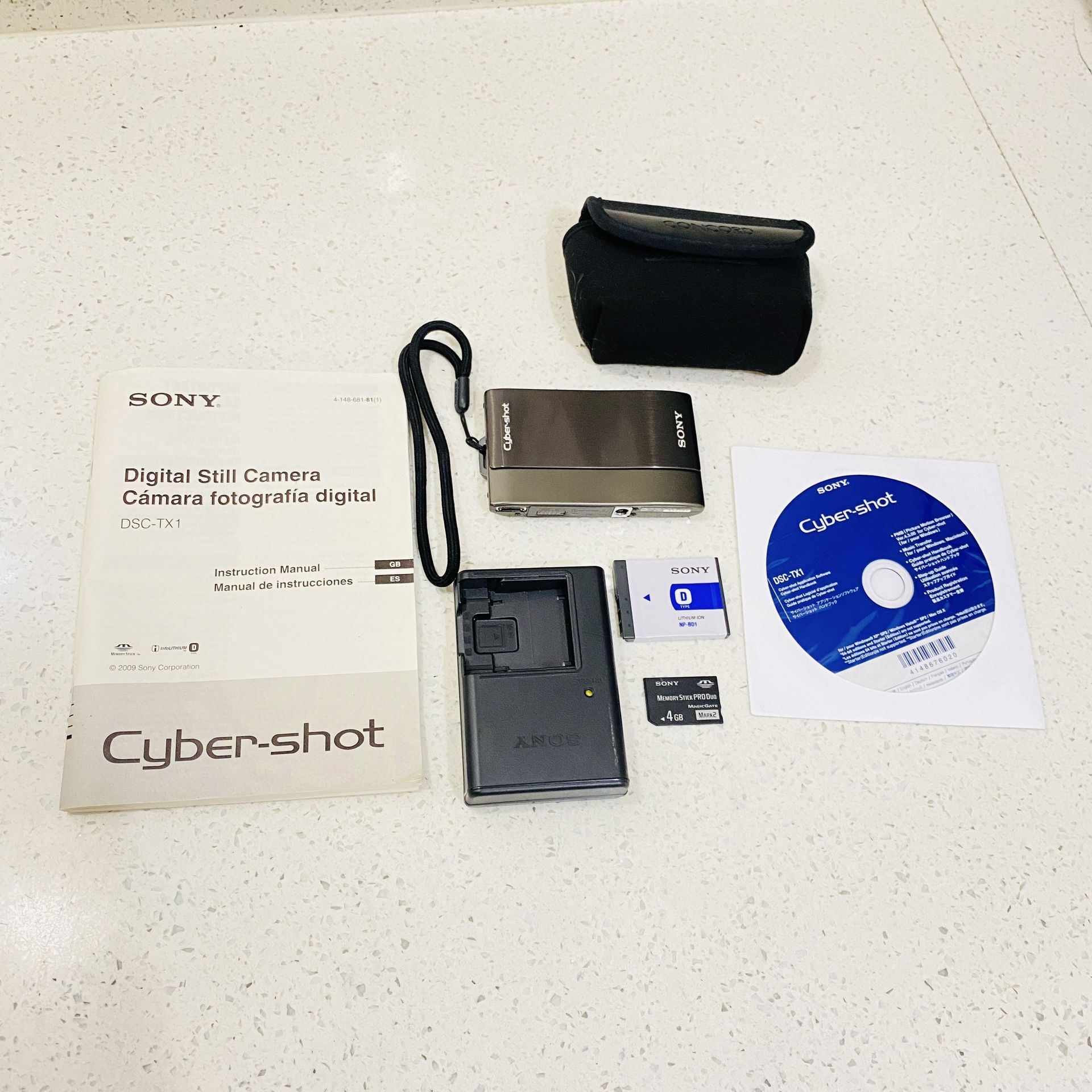SONY Cyber-Shot DSC-TX1 Carl Zeiss Digital Camera 10.2MP with Sony Battery, Sony Battery Charger, Sony 4GB Memory Stick, CD, Manual and pouch. Excellent working and clean. This exact item you will receive. No other accessories included. Not original pouch. Check all beautiful pictures and feel free to ask questions.
