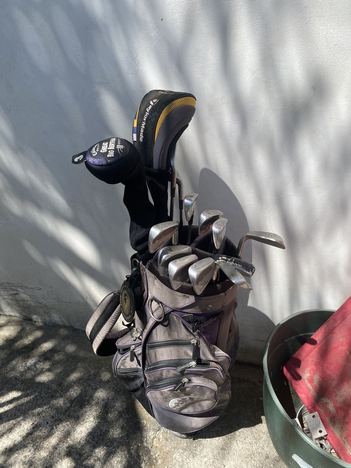 Complete set of Henry Griffits irons from 1 to Sand Wedge. Also included is a Taylormade 10.5 degree driver, a Callaway 3 wood and a titleist putter. All grips are in excellent condition. Sun Mountain Bag with 12 titleist balls and a handful of tees. Ready for the course! Located in Oak View.