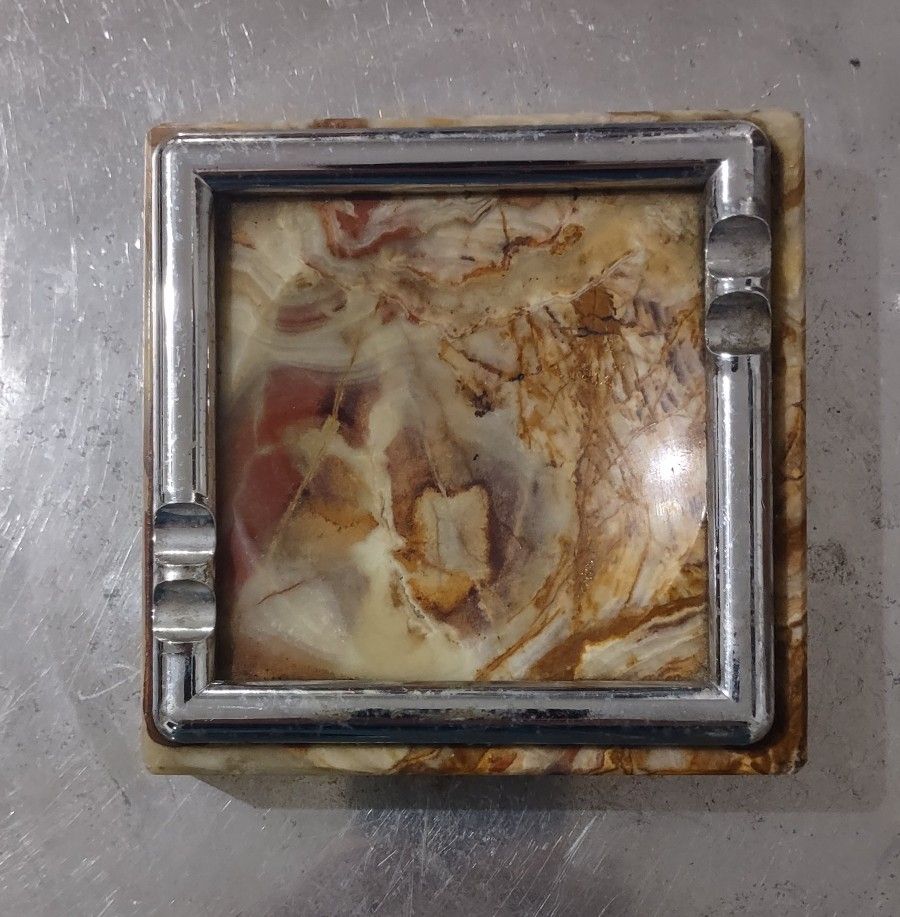 Vintage Mid Century 1960,Brown Onyx Ashtray: Boho Marble Decor,4" x 4"