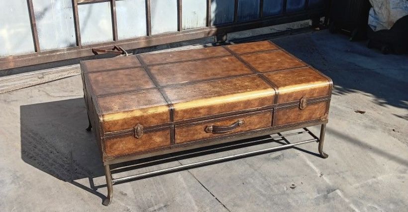 With steel base trunk /vintage/industrial.52" wideX 19.5" high x 32.5" deep.located by Burbank airport