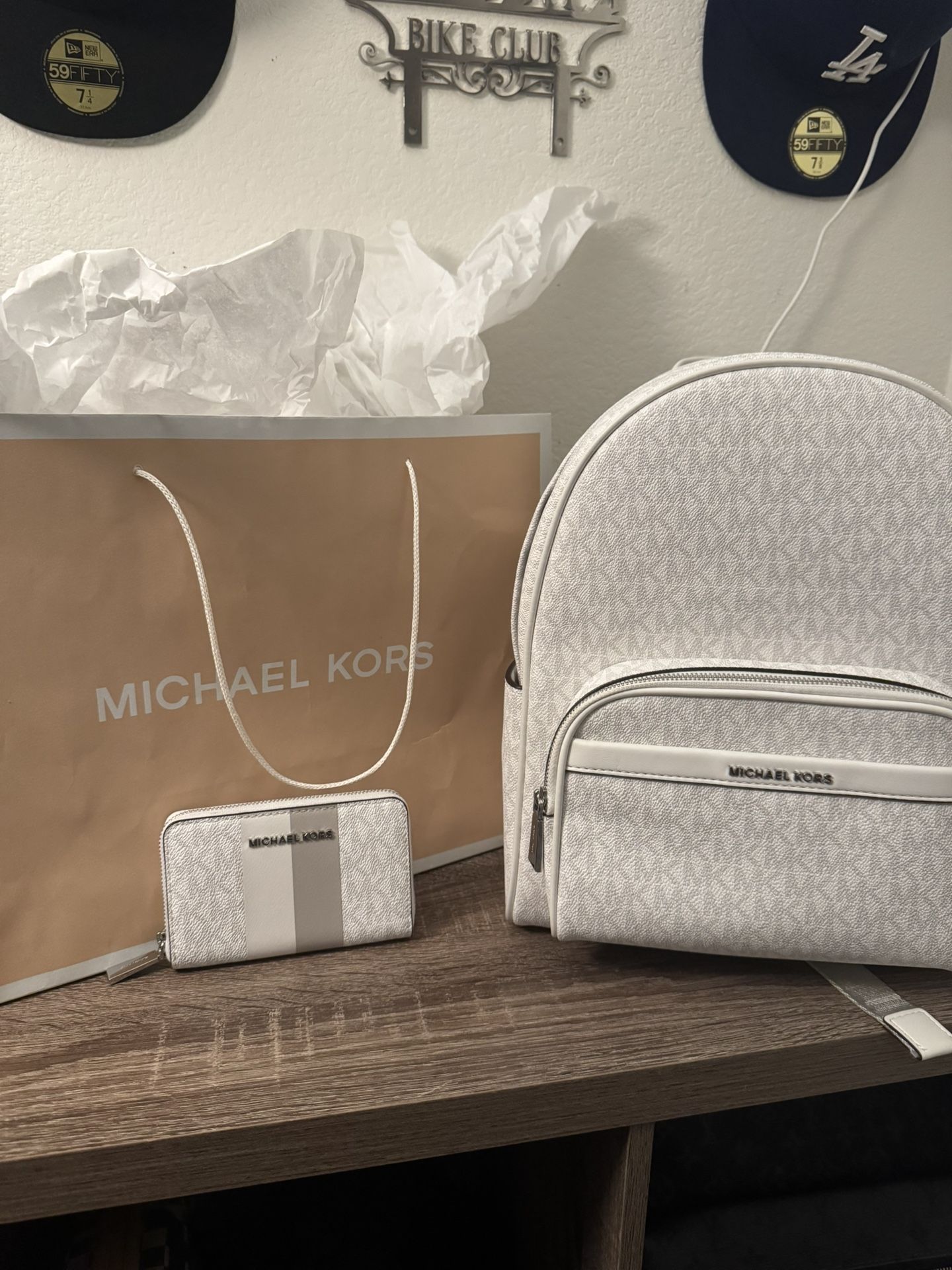 White Michael Kors backpack Mk 100% authentic Comes with mini purse Bought from store Brand new never worn