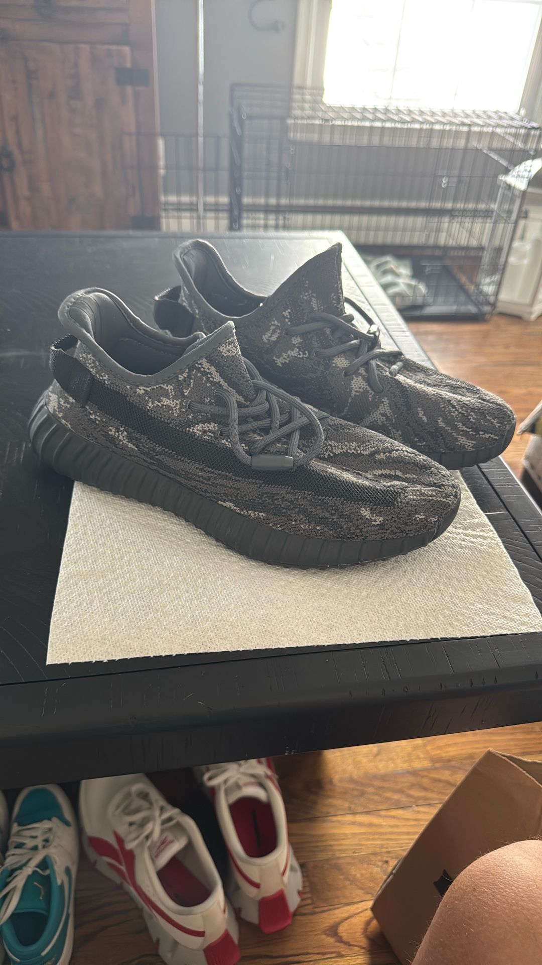 Selling a pair of Adidas Yeezy Boost 350 V2 sneakers in men’s size 8.5. These have been worn once and are in excellent condition. The Primeknit upper is clean, the Boost sole is still soft and responsive, and overall wear is minimal to none.