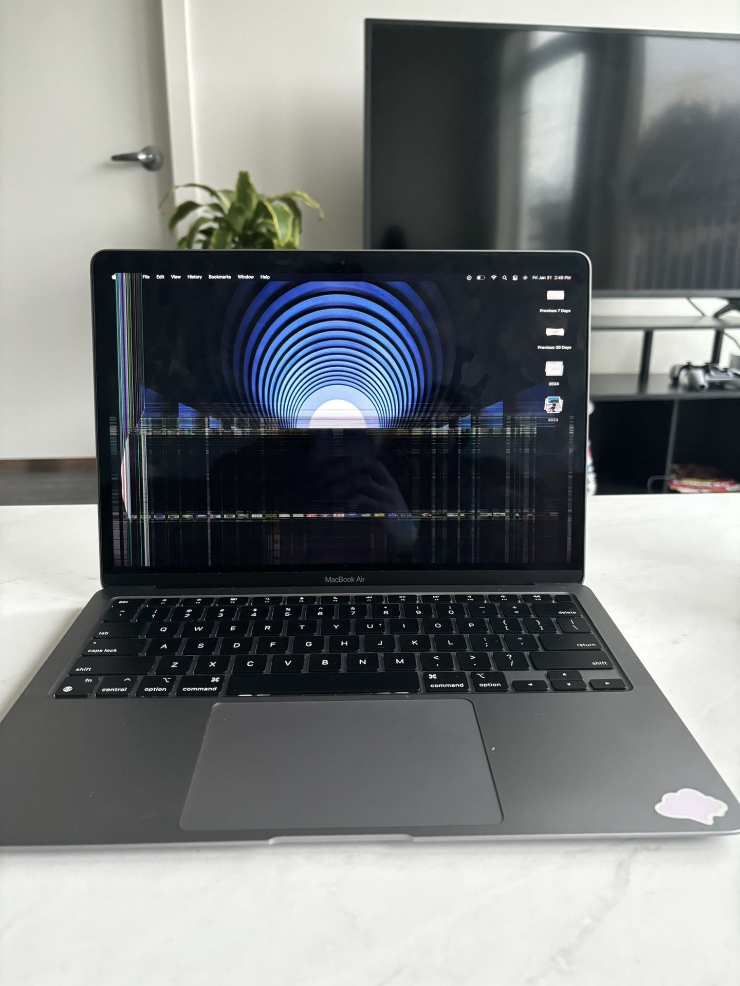 2020 Macbook Air M1 8GB. Display messed up but screen itself is fine. 2020 model however it was purchased new in 2023. Battery life is still strong and still has fast speeds. Willing to negotiate on price.