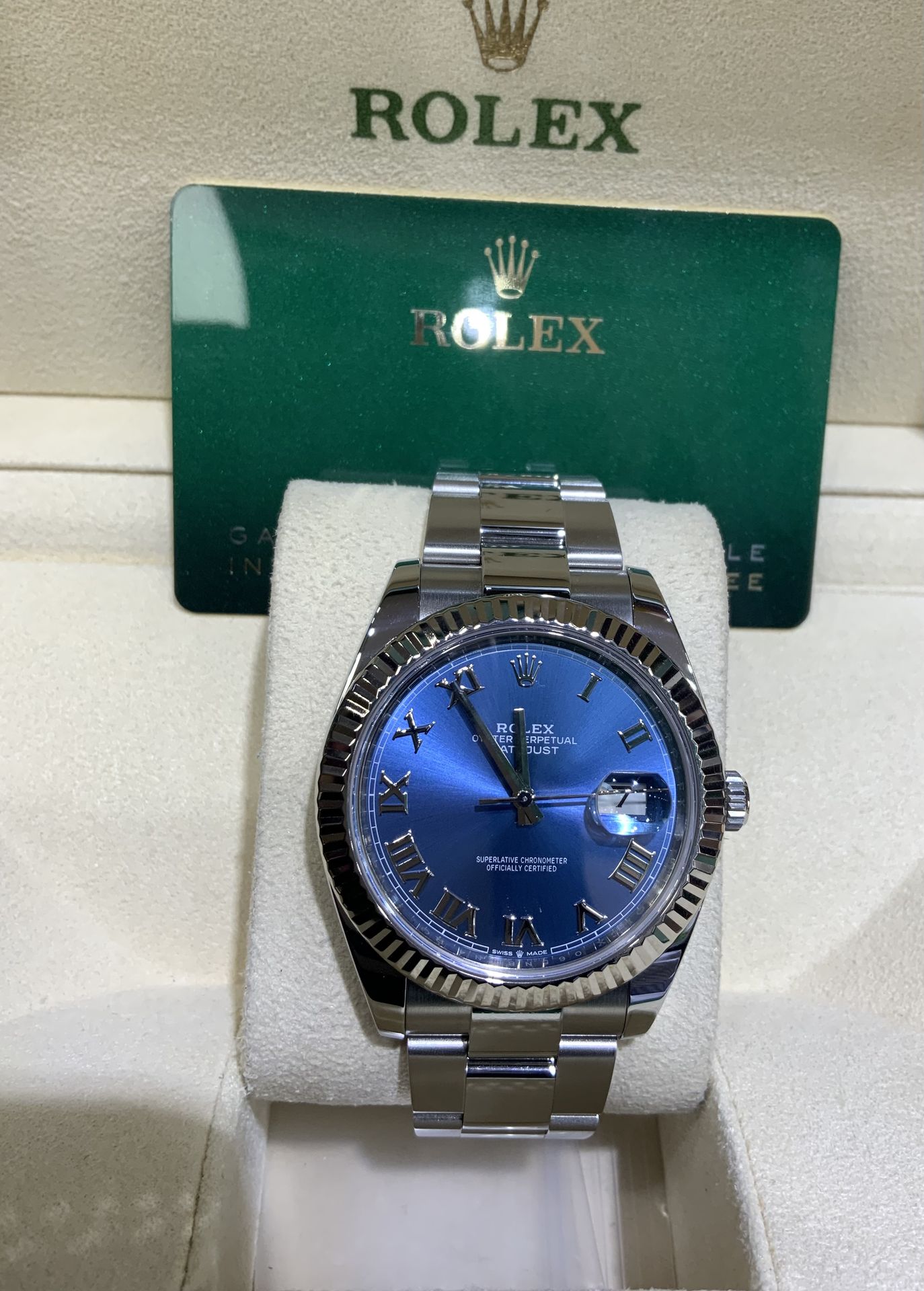 2020 Size:41 mm Model : 126334 Stainless Steel & White Gold Blue Roman Dial Oyster Watch & card