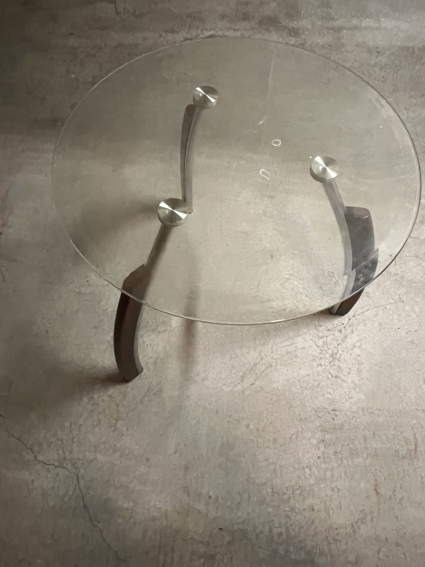 1 Round Tempered Glass End Table with Brown Trim Asking 20.00