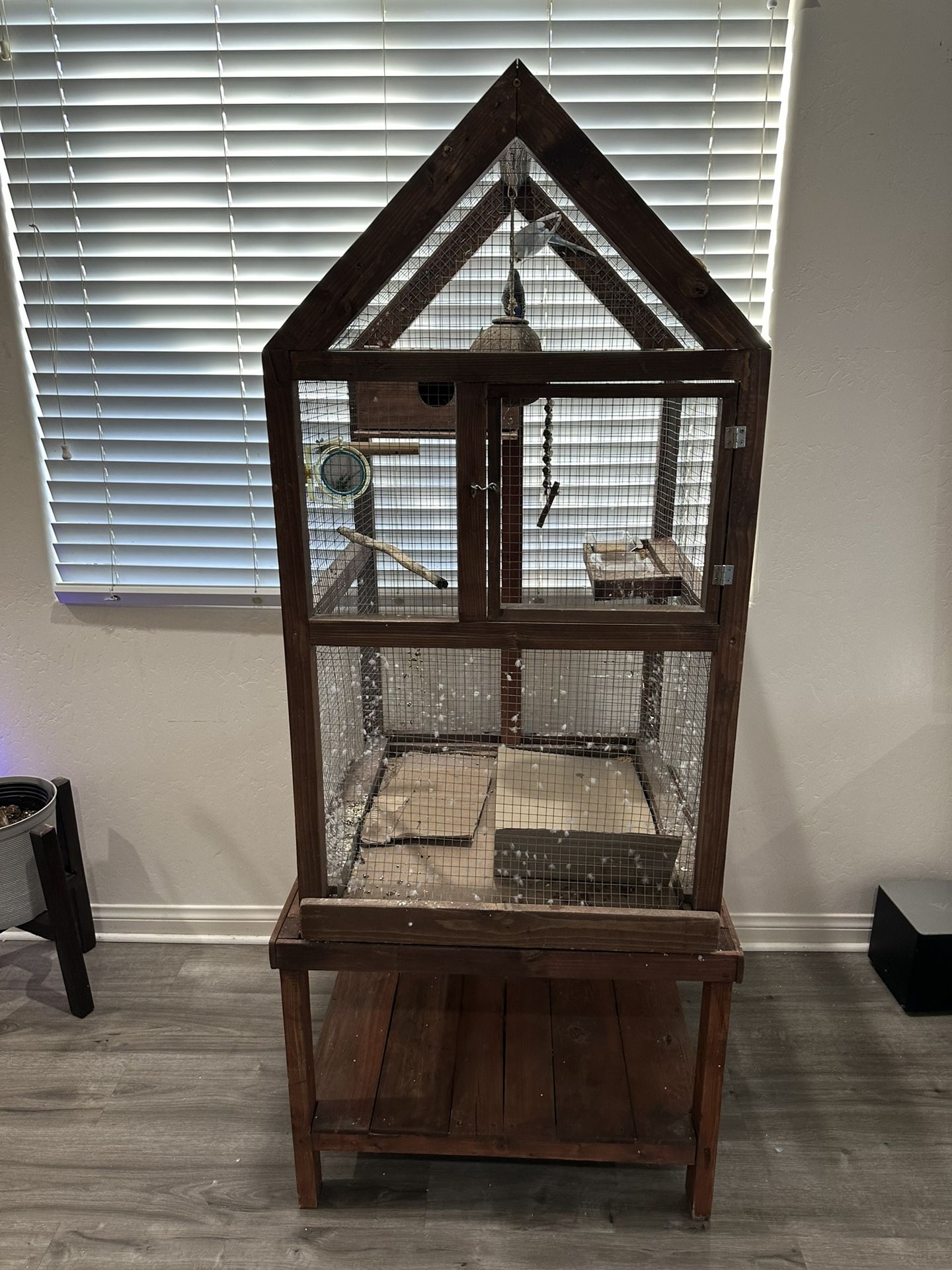 Wood Custom Built Bird Cage with Stand Chicken Wire Mesh Both Parakeets included with Cage