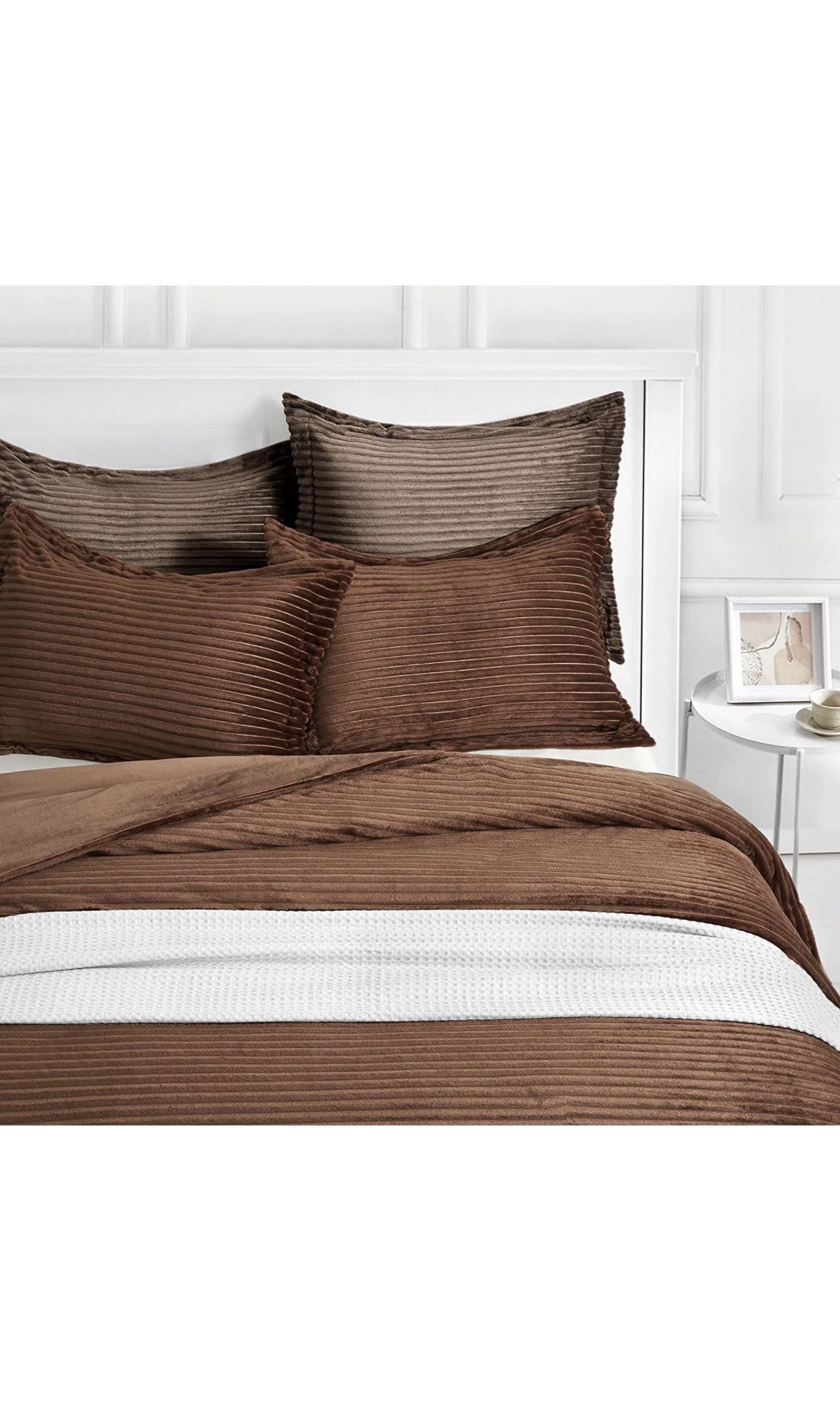Corduroy King Comforter Set- Polyester Corduroy Bedding Set, Brown Soft Warm Comfortable Bedding Set, 3 Pieces- Corduroy Comforter with 2 Pillowcases