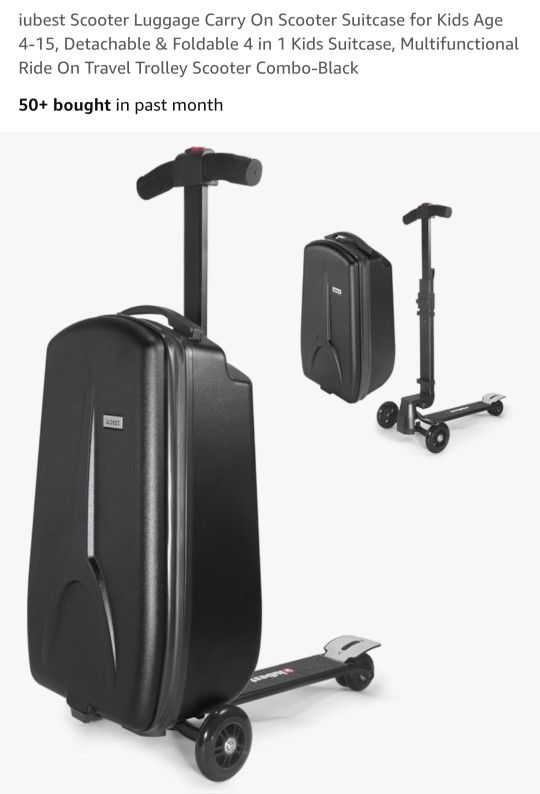 $180 OBO Brand new, never used, and still in the original box. For kids ages 4-15. Rideable suitcase that doubles as a suitcase and a scooter. Perfect for airports, travel, school, or fun on the go. Durable hard-shell exterior Fold-out scooter with smooth wheels Adjustable handlebar Lightweight and easy to maneuver Compact and TSA-compliant carry-on size