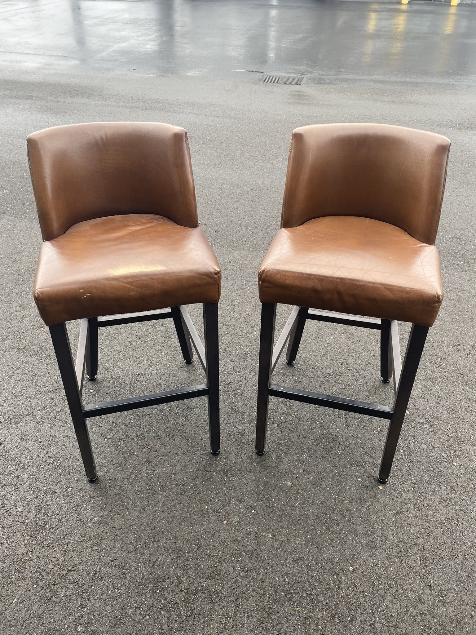 Some fading on these stools but it adds to the great vintage look! Very solid stools, leather with wood legs. $150 for both🙌🏼