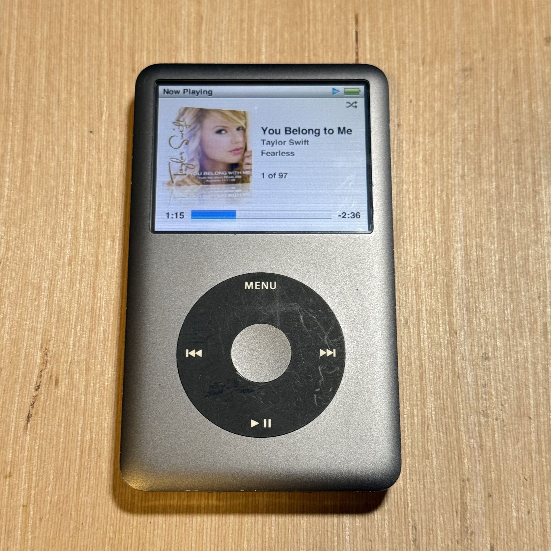 Apple iPod classic 7thGen Blk 160GB Model:A1238 w/7482-Songs-Charg Tested Great! 7-10 overall condition of the iPod iPod is in great condition front of the iPod where the screen is just I’m very light surface scratching on the front. Some light scratching on screen some light wear around the corners and edges for regular usage. Back of the iPod is in OK condition does have many scratching and light wear around the corners and edges from regular usage This iPod has been tested and working great. All buttons are working headphone jack working Battery life is 3 to 5 hours of continuous play. No need to replace battery. Comes with over 7400 songs mostly English and Spanish wide variety of music alternative pop country hip-hop old-school oldies 97 Taylor Swift songs,U2,311 Vicente Fernández no doubt Bob Marley too many to name Comes with aftermarket charger brand new, original headphones Protective rubber case Please see photos for condition Pick up in Anaheim I’m only public place Thank you take care