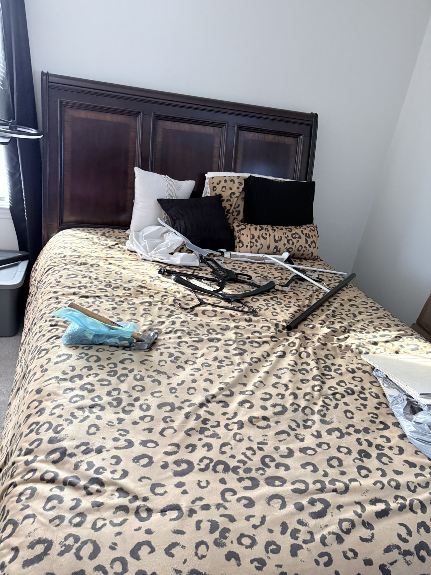 Queen bedroom with or w/o mattress 200 or OBO brand new firm mattress Moving must go