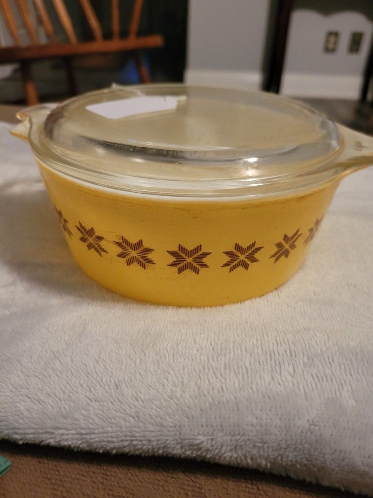 Vintage PYREX Town & Country Yellow Snowflake Casserole 1 1/2
