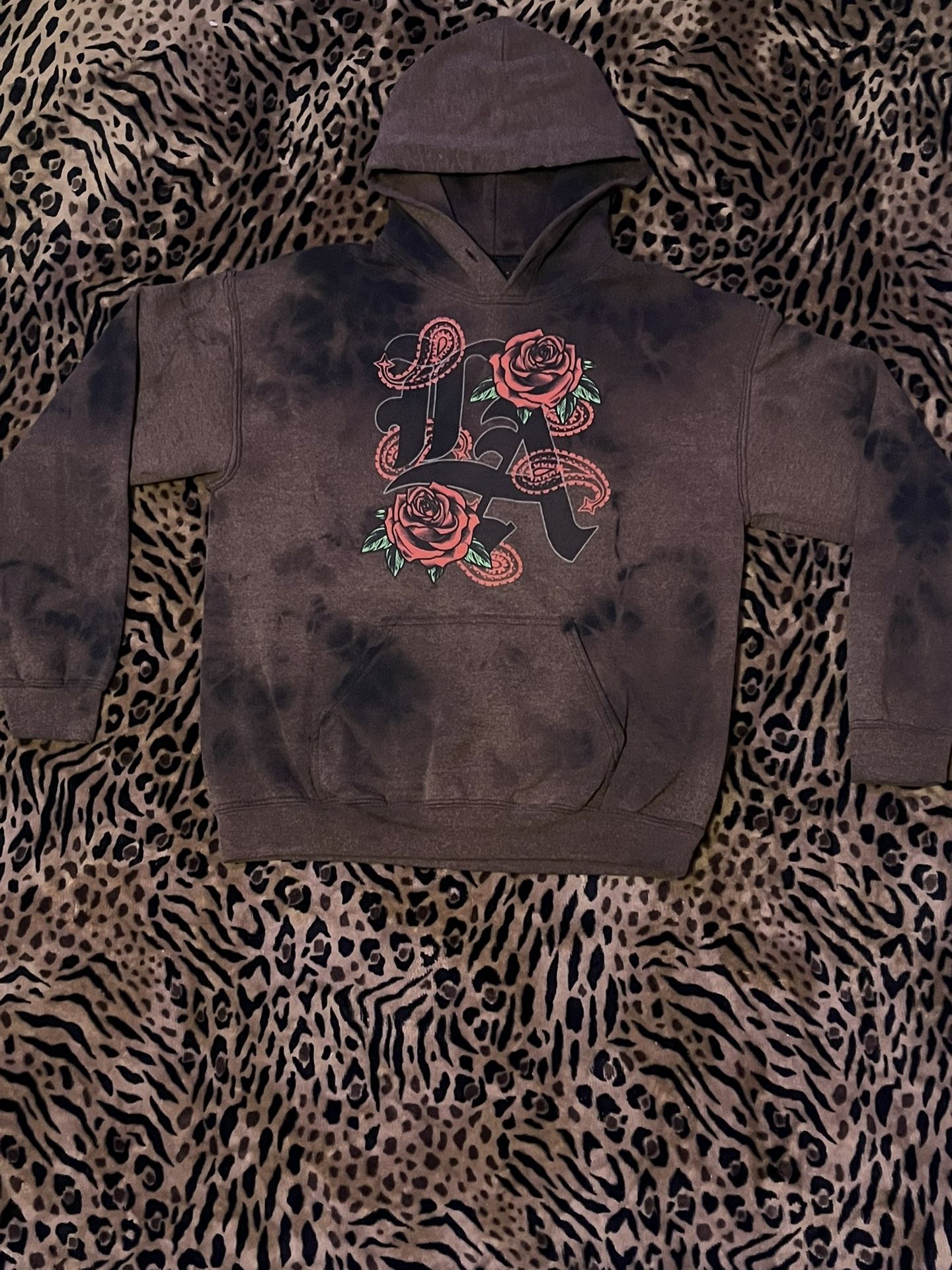 LA Rose Graphic Hoodie – Bleach Dyed Streetwear Pullover
