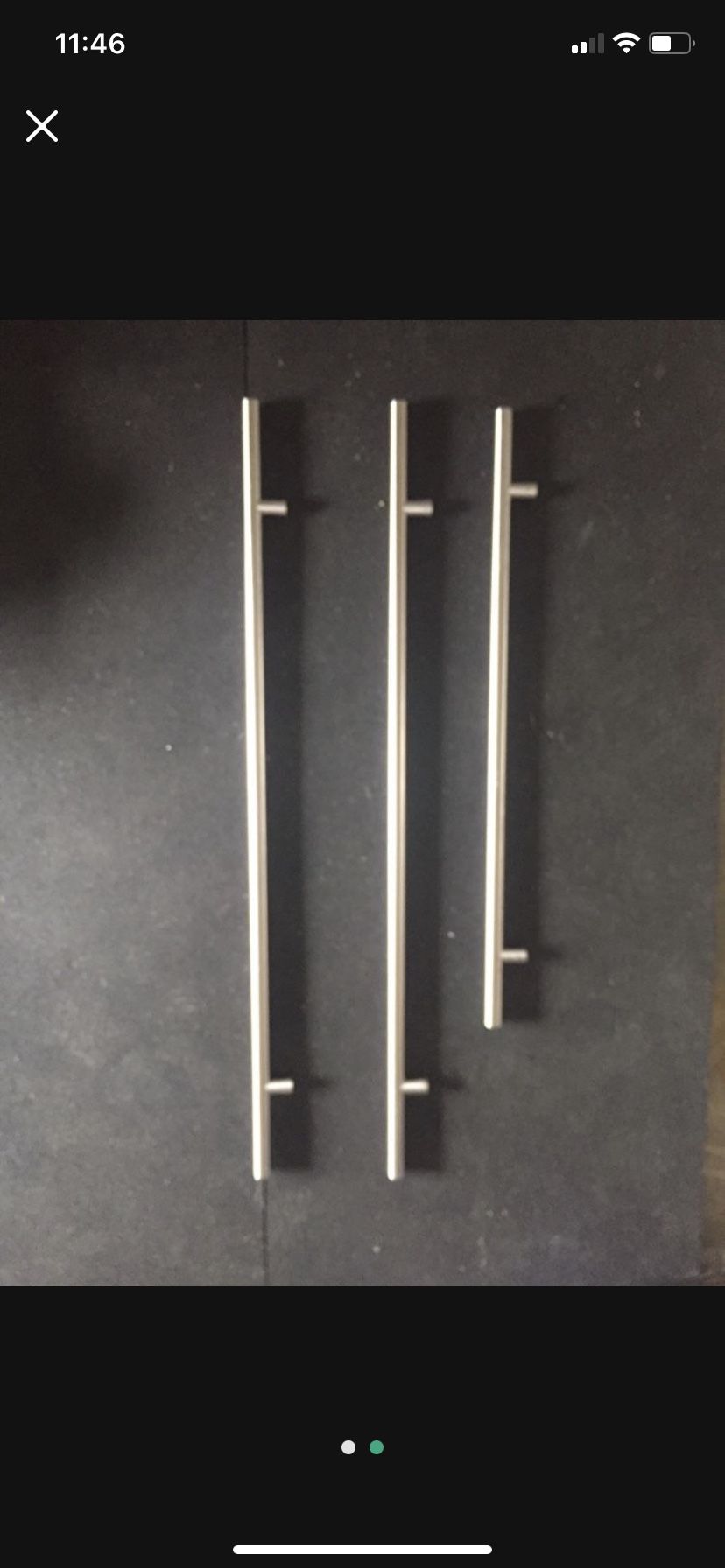 Brushed nickel refrigerator/appliance pulls. For French door refrigerator. Very sturdy. (2) 40” and (1) 31”.