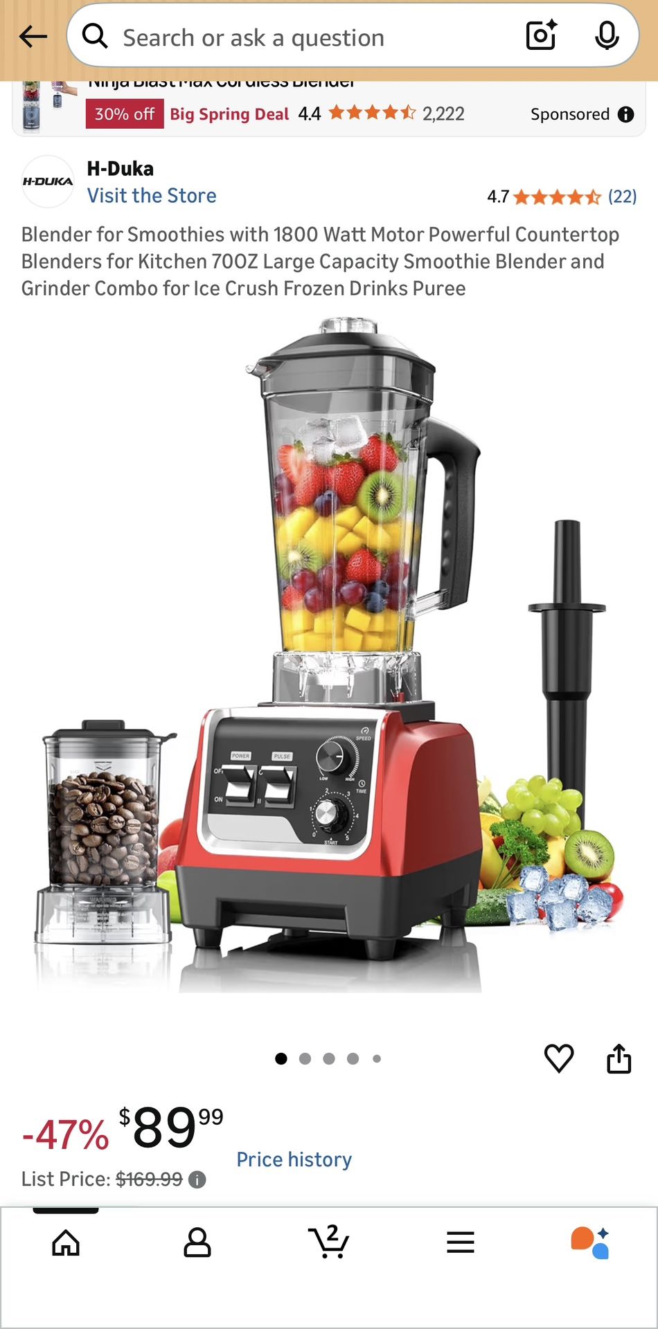 Blender for Smoothies with 1800 Watt Motor Powerful Countertop Blenders for Kitchen 700Z Large Capacity Smoothie Blender and Grinder Combo for Ice Crush Frozen Drinks Puree Brand New! Sealed!