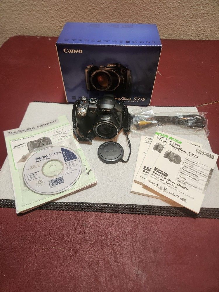 Digital Canon camera with box complete with lens cap, neck strap, cables, user guides, 16GB memory and 4 new AA batteries. Not fully tested but powers up without issue and lens extends and retracts fine. 5 pictures viewable from prior owner.