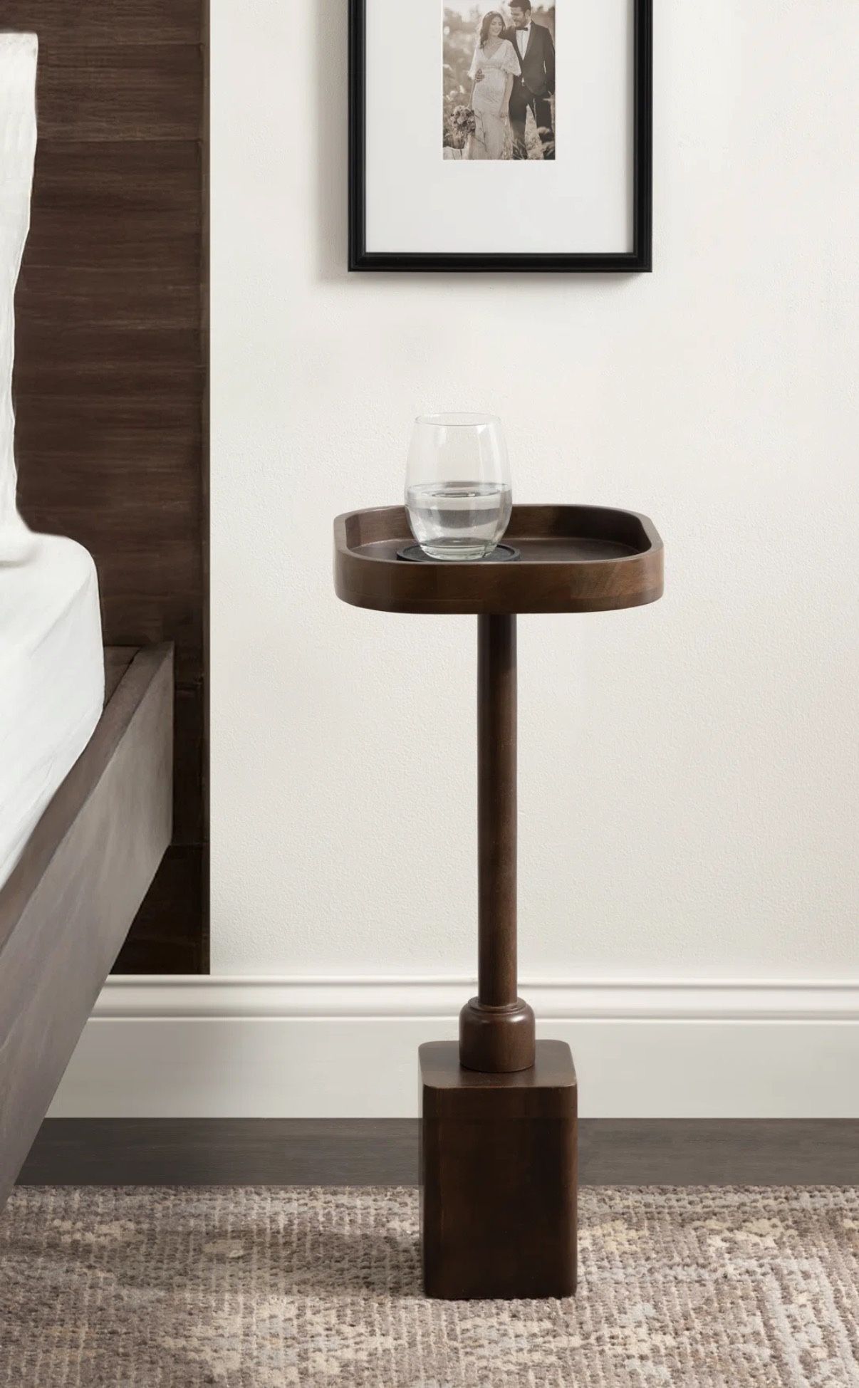 This is a Kate and Laurel Woodrow Modern Mango Wood Square Drink Table in a dark brown finish. It features a tray tabletop and is easy to assemble. The dimensions are 10" x 24". It's brand new in the box!