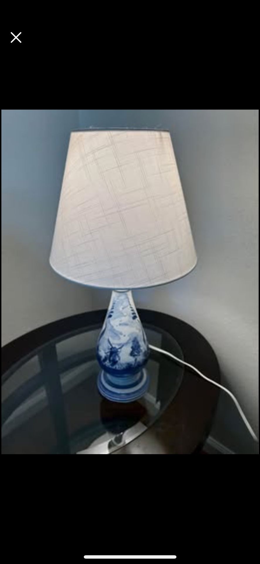 I’m moving soon and need to sell most of my home decor. Thanks. Pretty Vintage Delftwear lamp. Great condition. Has a new lamp shade and bulb. Pick up in NW Reno. No delivery. Cash only. No digital payments. Thank you.