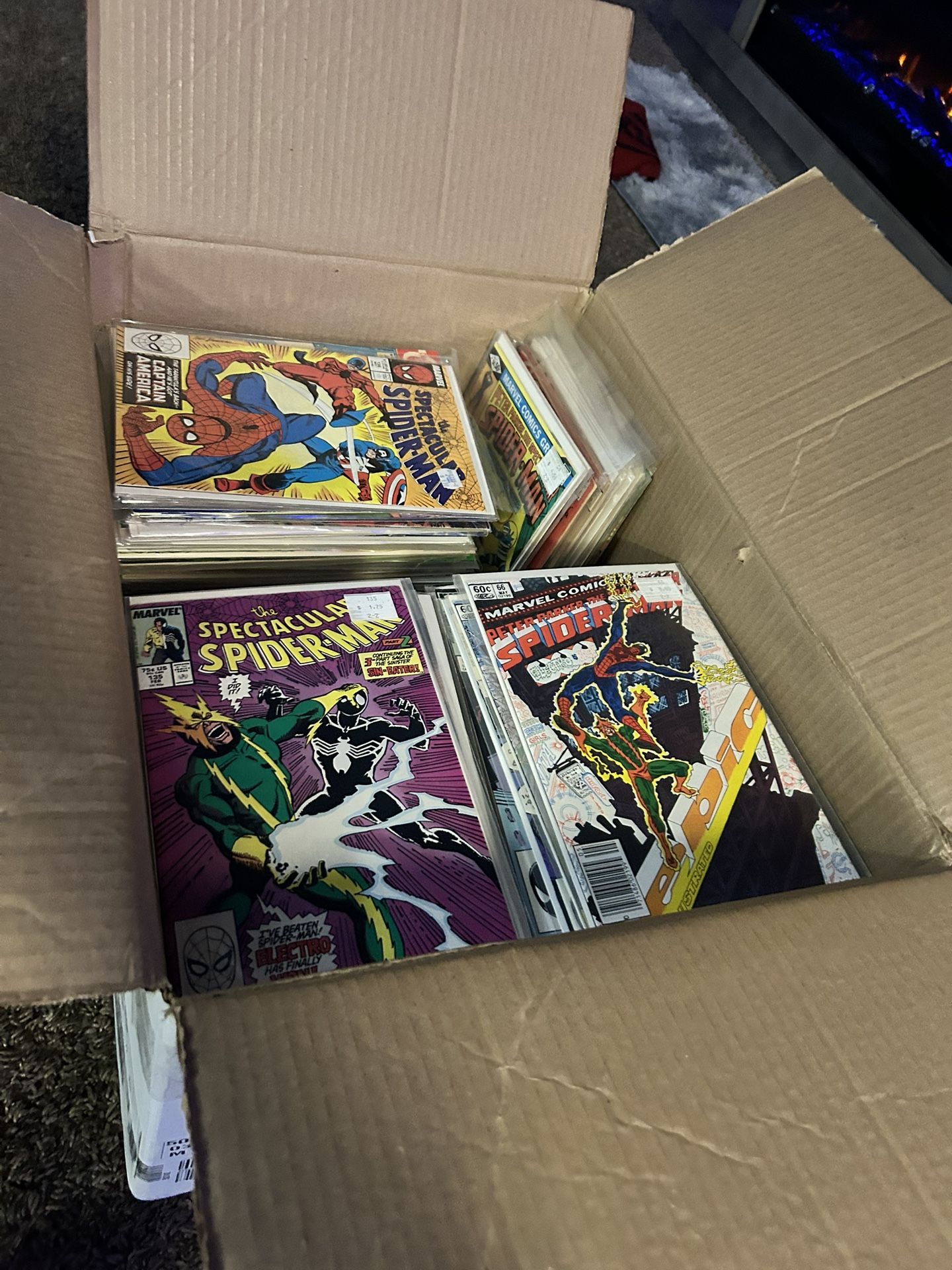 I have a big box that has 313 of all differnt comic books ranging from Marvel, DC, cartoon, superheros and spiderman comics. All the comics are in great condition and in the plastic wrap still, there are only a couple that maybe arnt but otherwise great for comic collectors, let me know if your interested or know any comic book collectors near by.