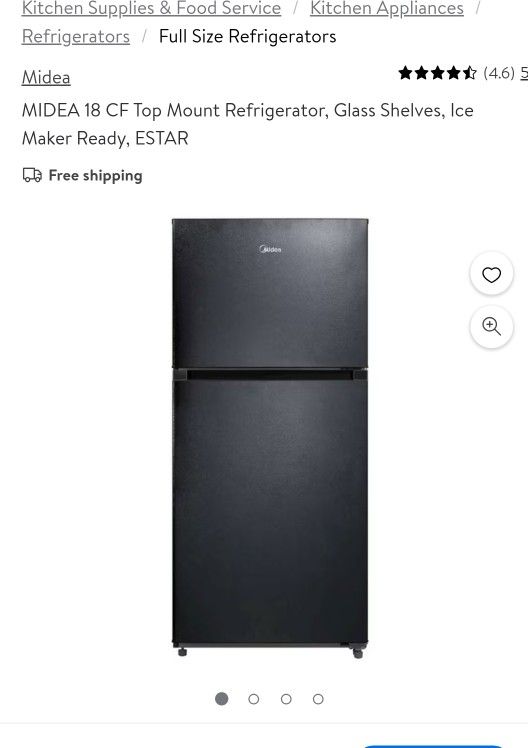 18 CF Top Mount Refrigerator, Glass Shelves, Ice Maker Ready, ESTAR Midea designed our Top-Mount Freezer Refrigerator with convenient features like LED lighting that lets you quickly find what you're looking for and electronic controls that let you adjust the temperature with a single touch. Dual crisper drawers better preserve perishables. The energy-efficient, top-freezer design puts ice cube trays and frozen foods at eye level for easy retrieval. The reversible door can be adjusted to open from left or right. Net Total Capacity: 18 ft³