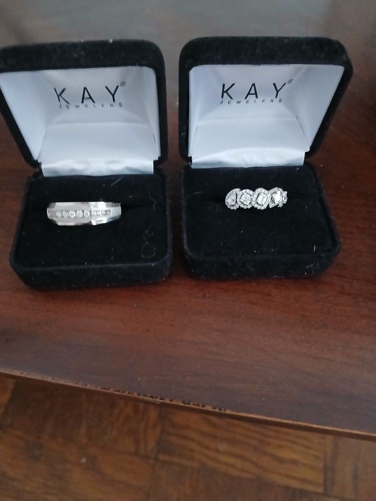 10 kt white gold with diamonds women's size 7 means I believe a 10 make a offer no low balls plz will sell separate for right price pait 3,500
