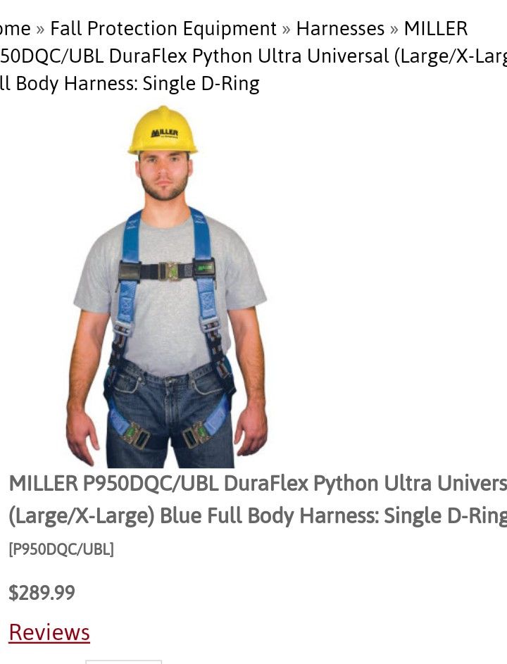 MILLER P950DQC/UBL DuraFlex Python Ultra Universal (Large/X-Large) Blue Full Body Harness: Single D-Ring.