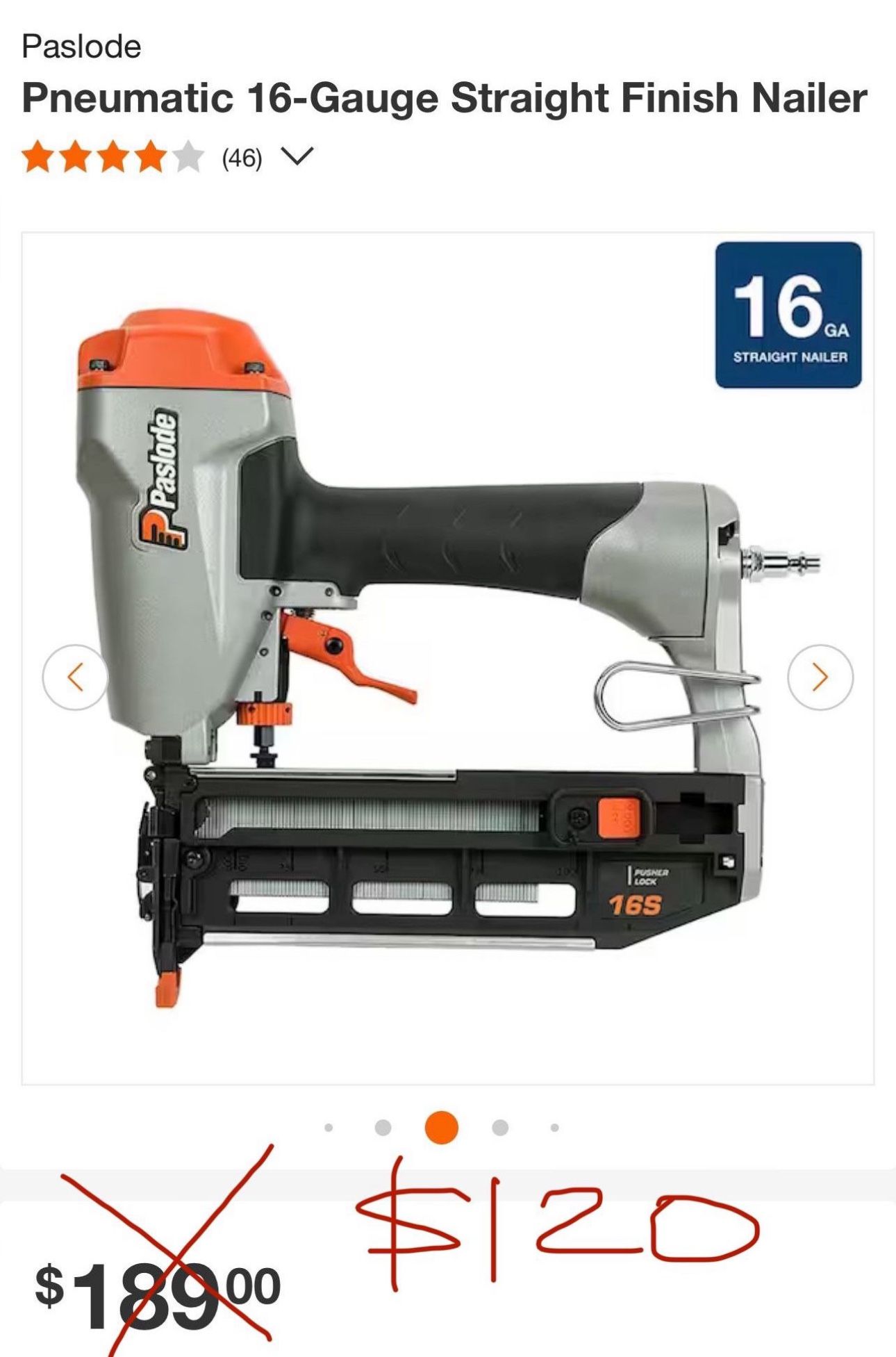 Paslode Pneumatic 16-Gauge Straight Finish Nailer