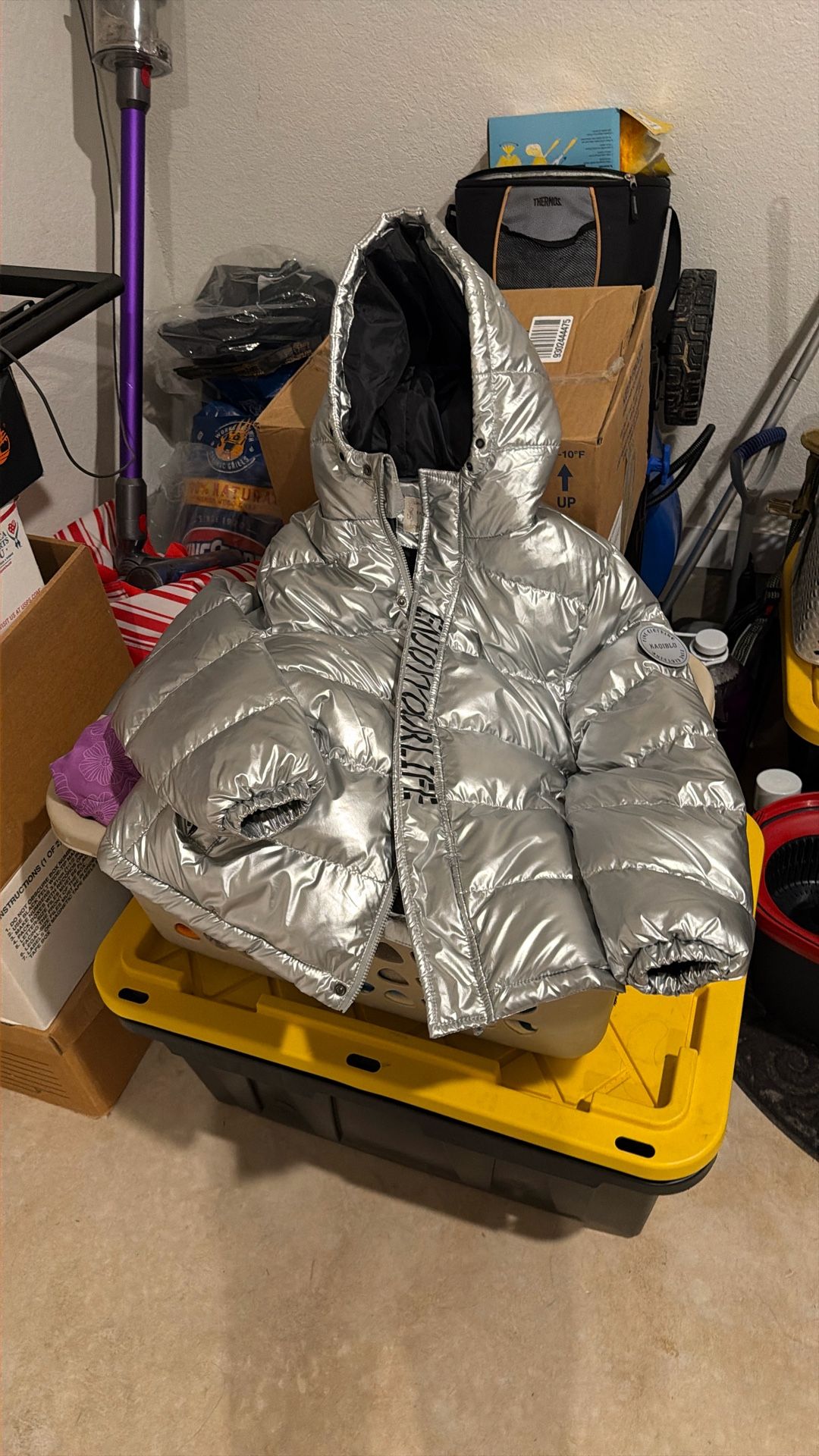 Size small in men/ medium,women/ large in youth I also have the same exact jacket one size bigger Used once for both