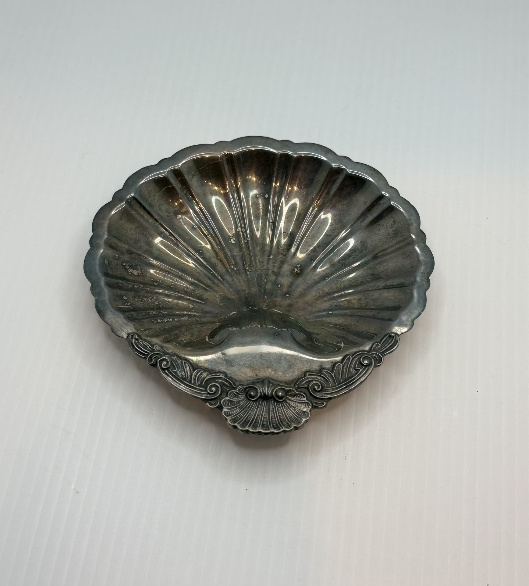 This vintage dish features a natural mother-of-pearl seashell design, ideal for holding trinkets or serving as a catchall tray.