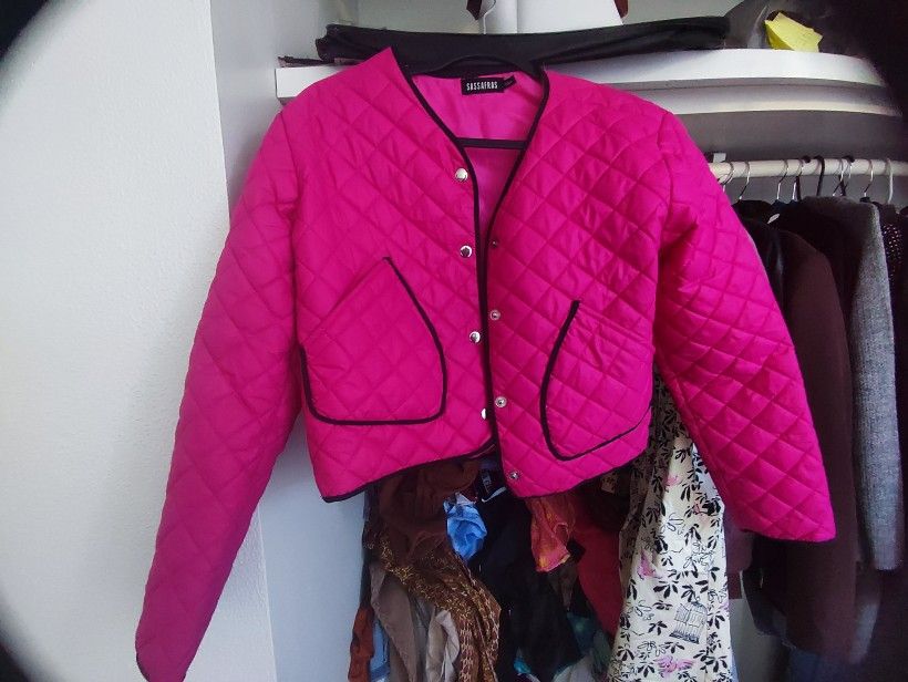 Hot Pink Quilted Cropped Jacket With Pockets For Women