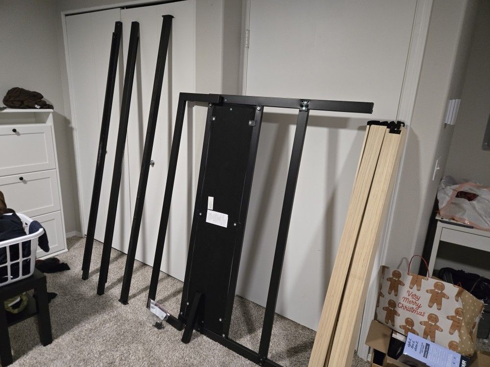 Queen size metal bed frame with slats. Its sturdy and in good codition.