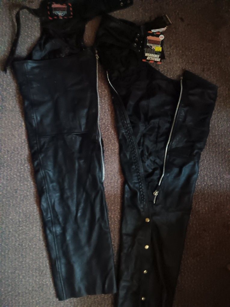 Size extra large Black leather chsps Never worn, tags still on them They were 108.00$ 2 separate pieces