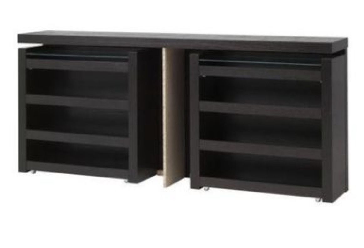 IKEA Malm headboard storage - sides roll out with glass top and 3 shelves. Good for storing bed linens and such. Good condition