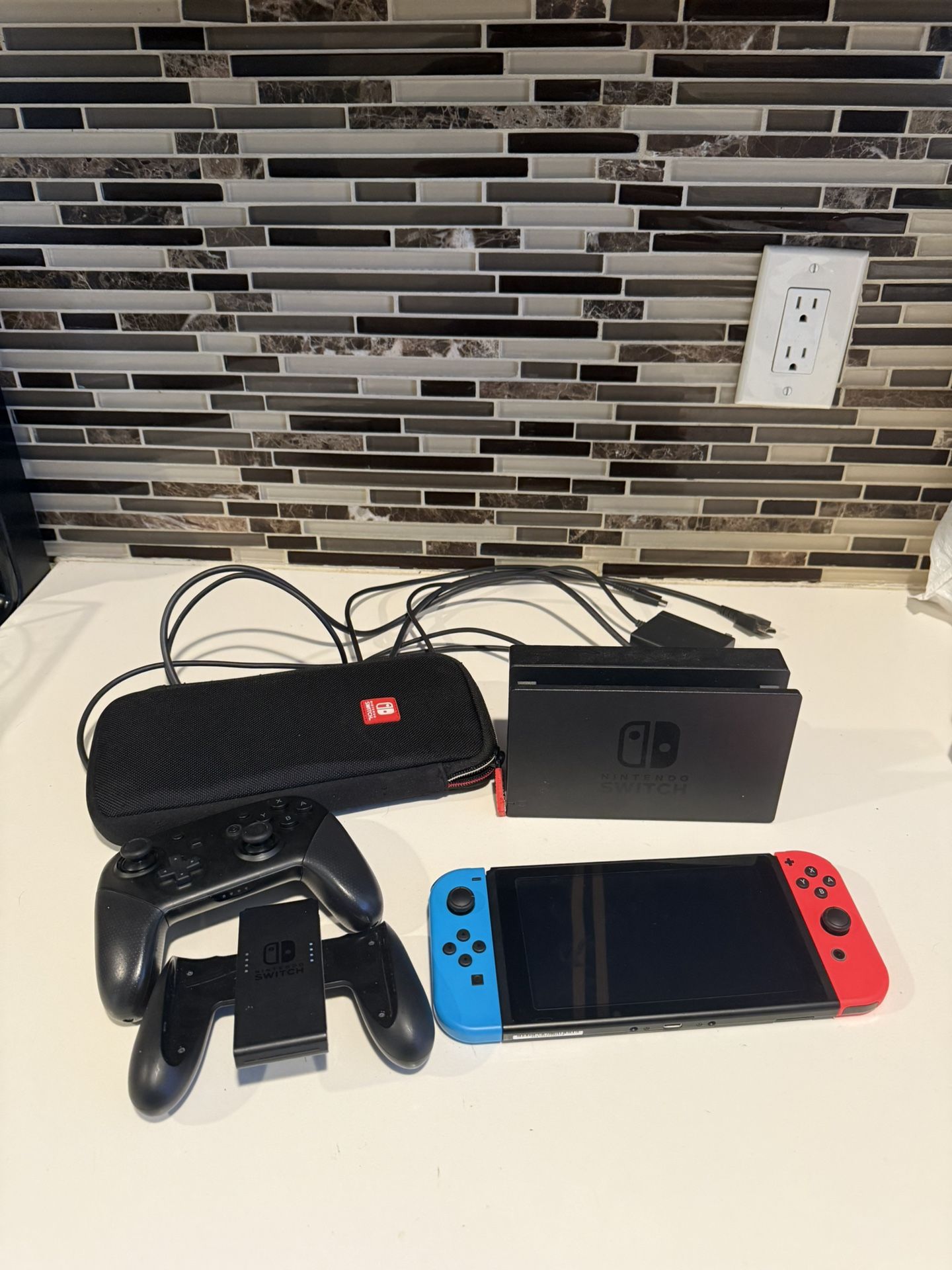 Nintendo Switch With Neon Blue And Red Joy-Con + Extra Controller