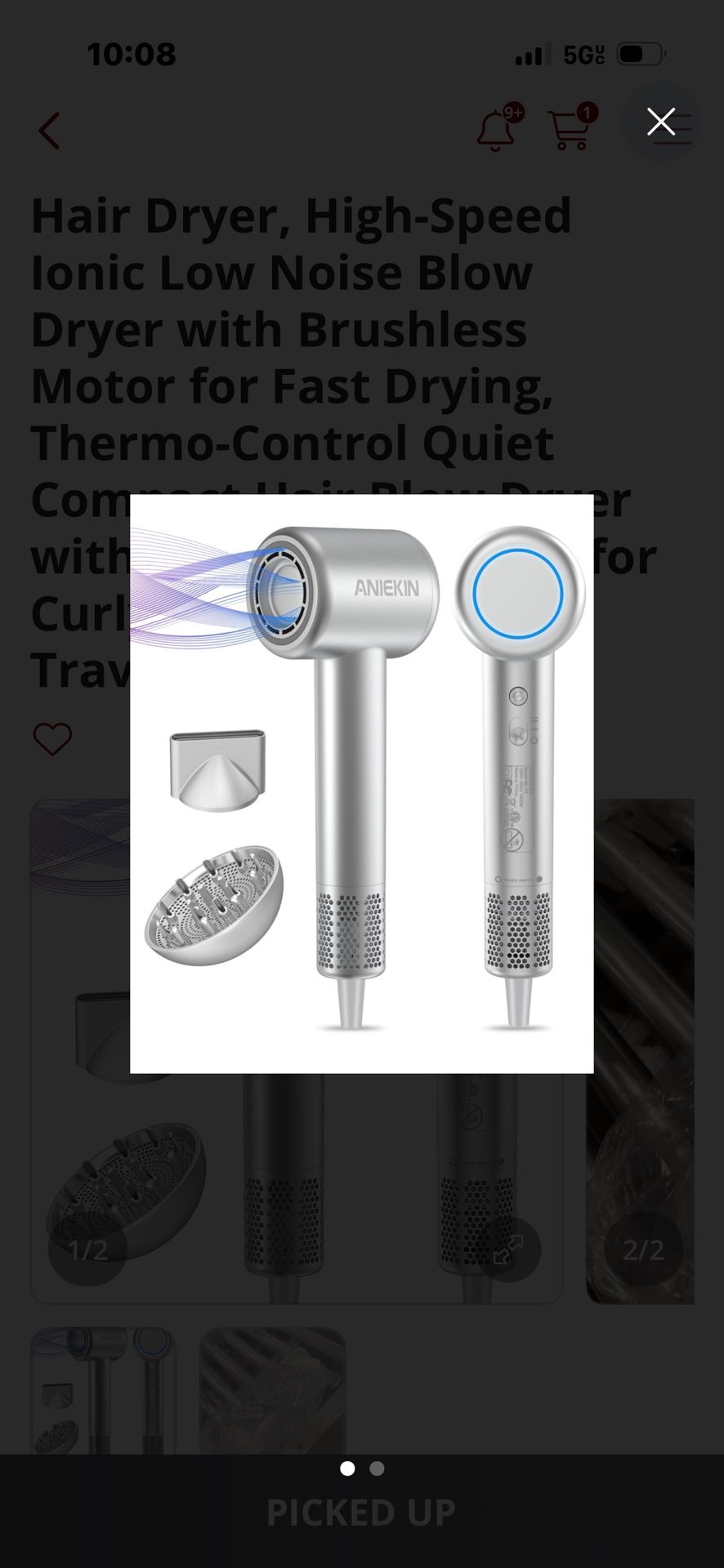Hair Dryer, High-Speed lonic Low Noise Blow Dryer with Brushless Motor for Fast Drying, Thermo-Control Quiet Compact Hair Blow Dryer with Magnetic Diffuser for Curly Hair for Home Travel Salon ANIEKIN