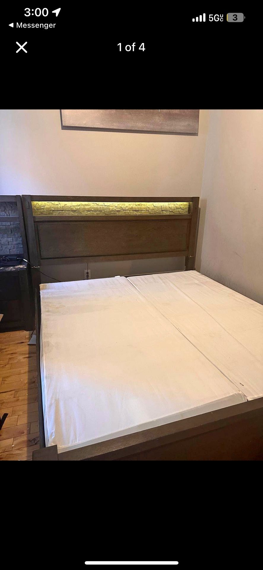 California King Bed Room Set , Dresser With Large Mirror , 2 Night Stands With LED head Board Also Has LED