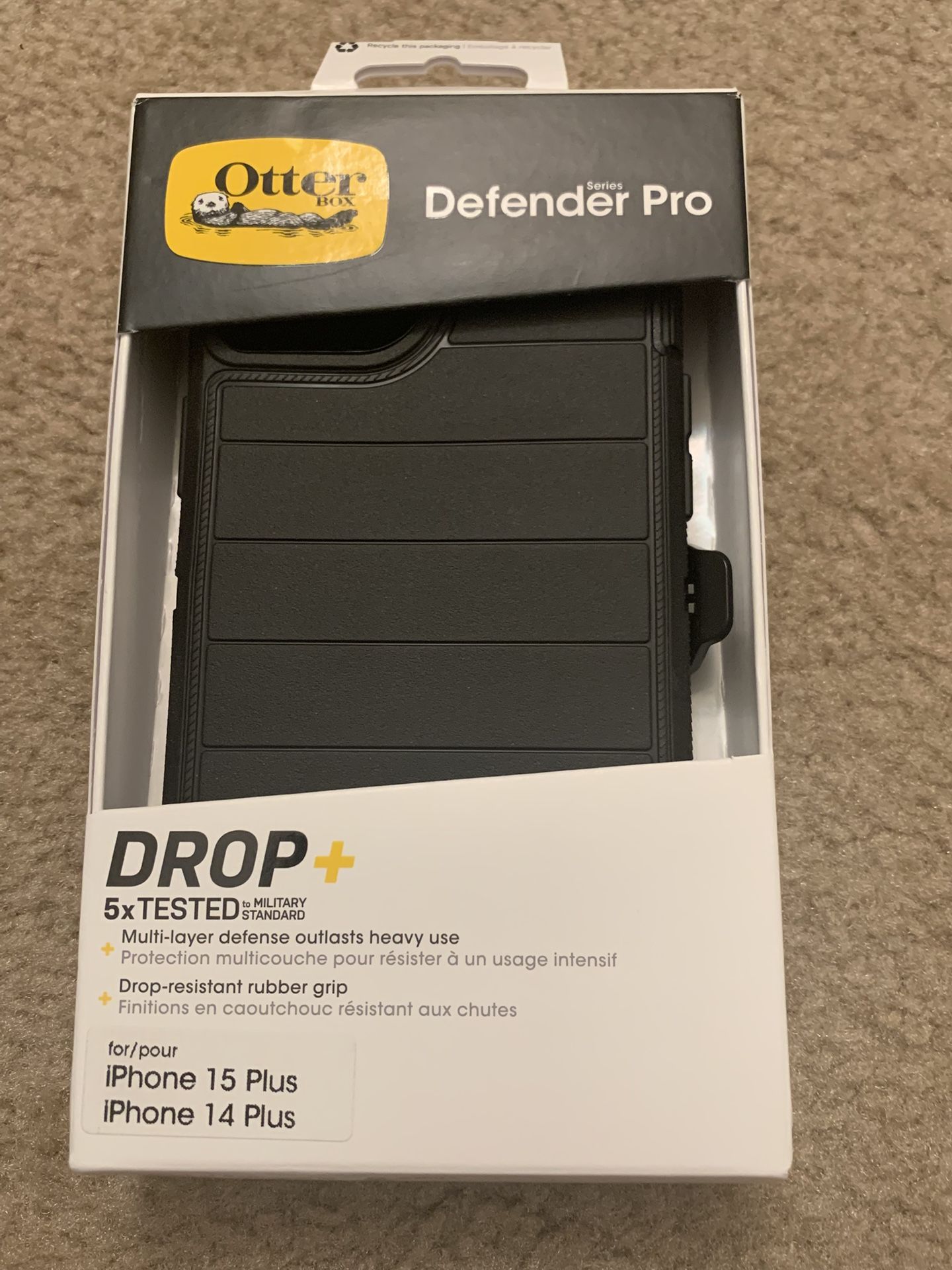 Otter Box Defender Pro Series Black Phone Case For iPhone 15 Plus iPhone 14 Plus New
