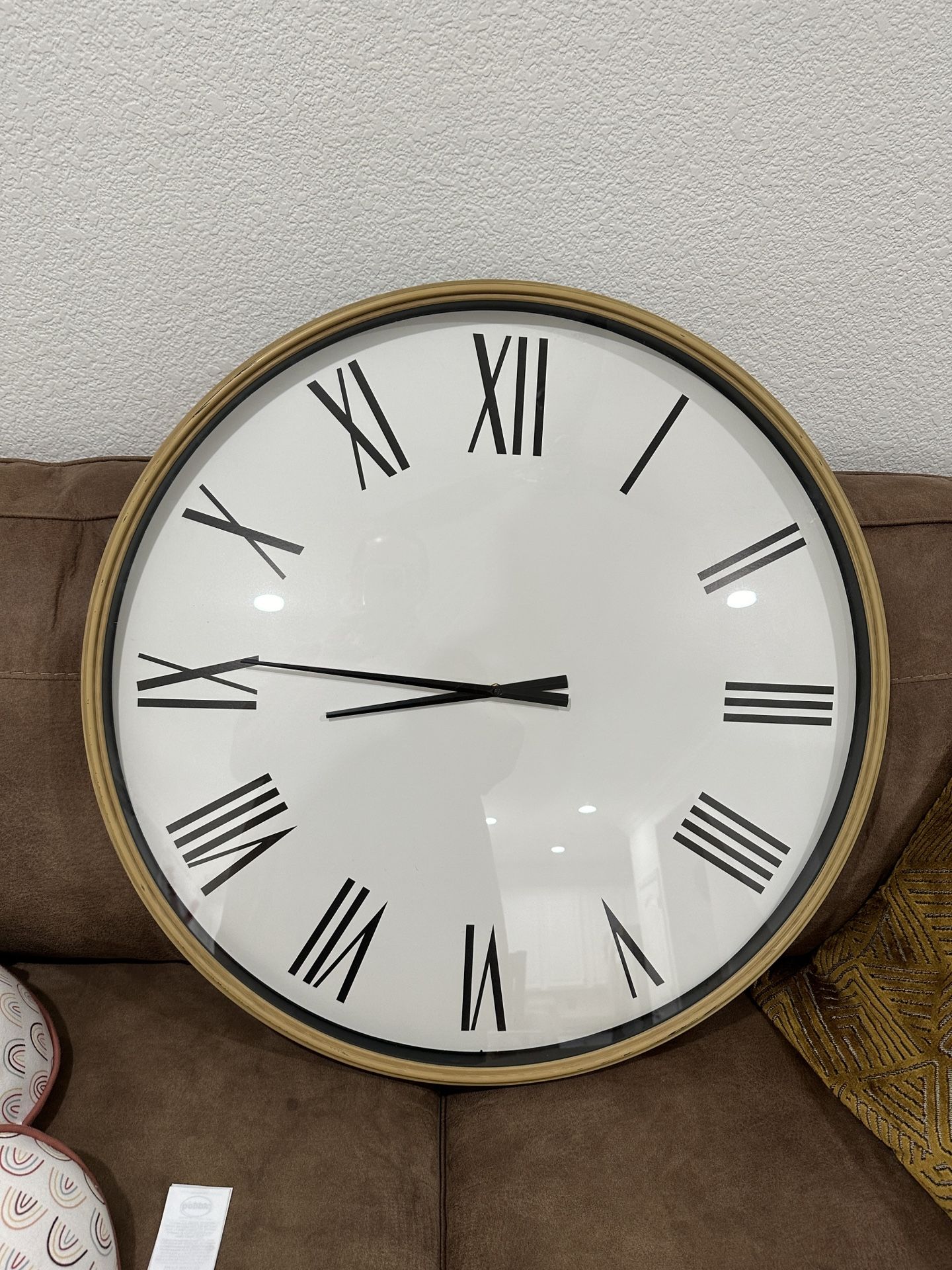 30 inch diameter. The clock is new but we just moved and it doesn’t go with the decor in our new house.