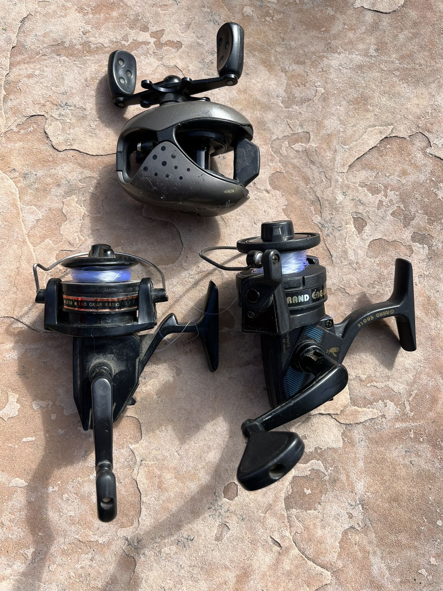 2 good reels - a Grand Eagle GE40 and a 401 Tom Sawyer + a Ambar USA1 (slightly damaged) bonus Reel Free.
