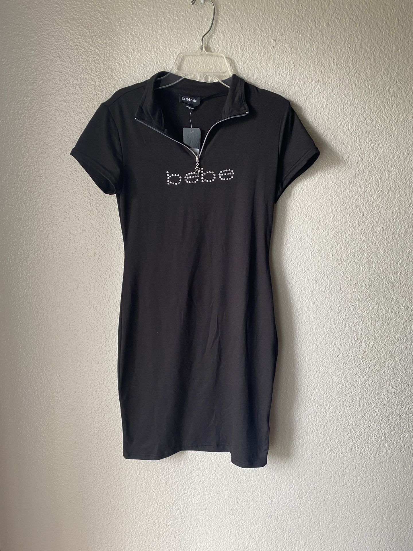 Brand new womans Bebe brand black bodycon knee length dress up for sale Size Womans small In brand new condition with tag Looking to sell for cash only Can only meet in Tacoma If you have any questions or offers just ask