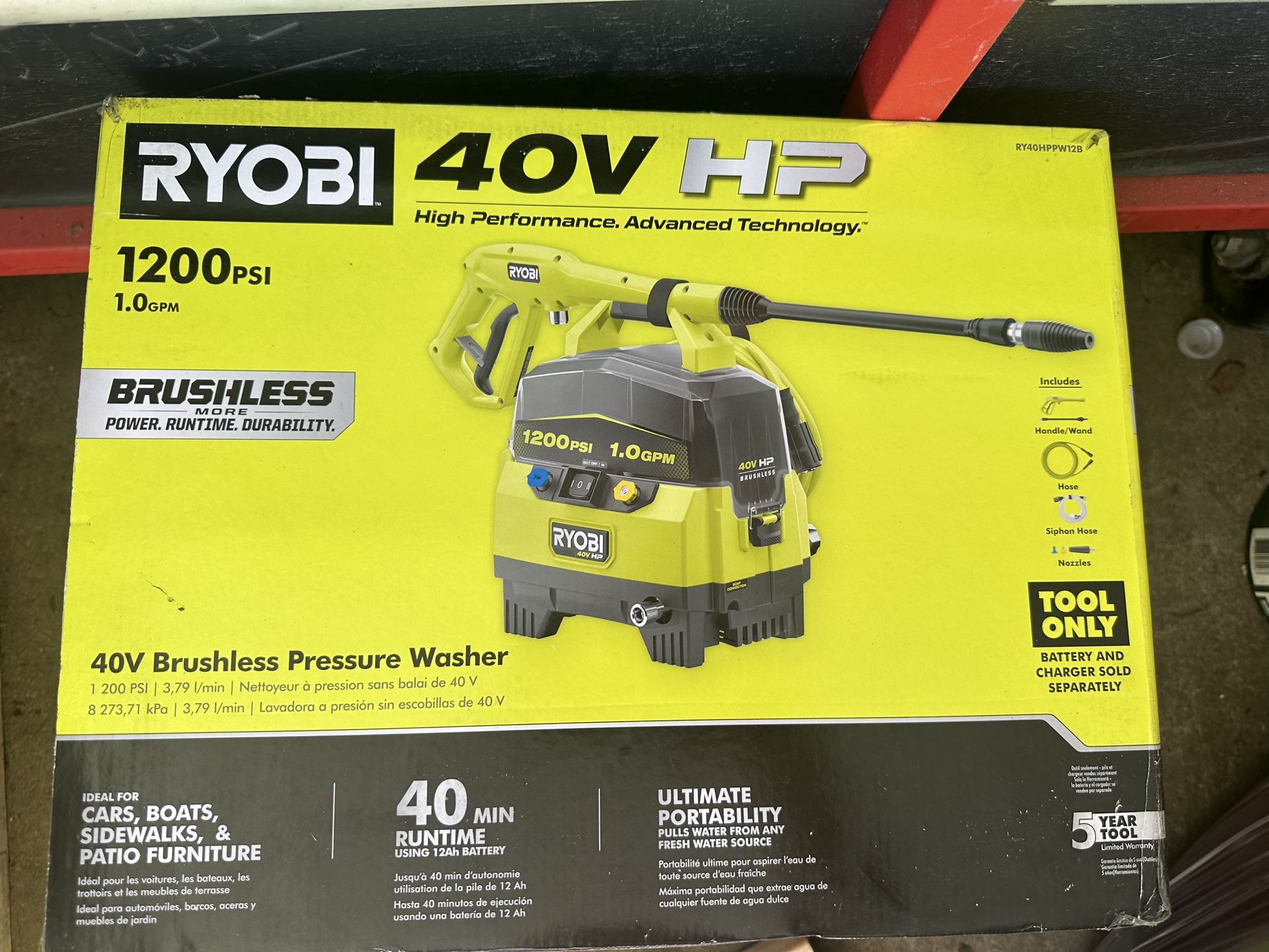 Ryobi Pressure Washer 40v 1200 PSI 1.0 GPM Cordless Electric Battery Operated (TOOL ONLY) Retails $200 + Tax Asking $150 obo