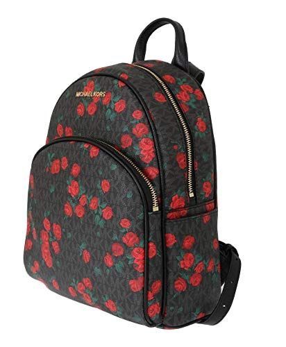 Michael Kors Abbey Medium Black Signature Leather Roses Backpack Bag