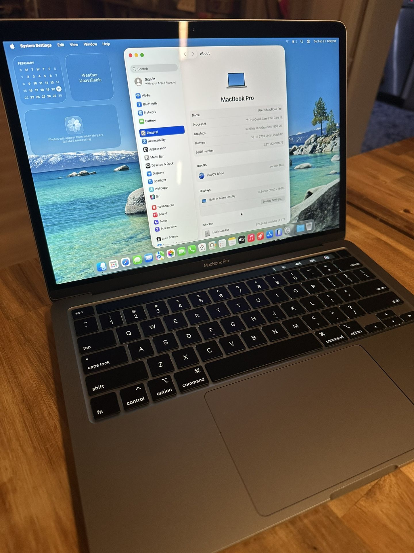 YES, ITS AVAILABLE 2020 - MacBook Pro 13 Intel core i5 16GB Ram 1TB Storage Works great. No issues. No locks. Couple wear marks, overall good condition. No charger/power adapter included. (It’s charged and I have one to test with if needed)