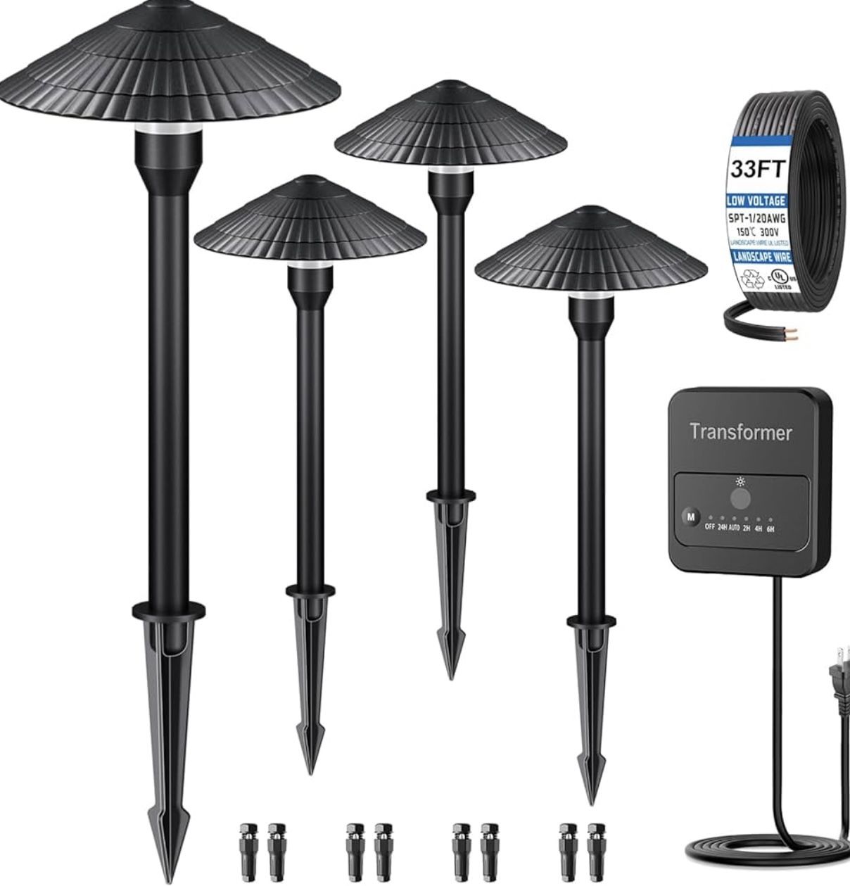 ZZXX All-in-One Low Voltage Landscape Lighting Kit 4-Pathway Lights with 40W Transformer, 5W LED Landscape Lighting Low Voltage 12-24V,IP66 Waterproof